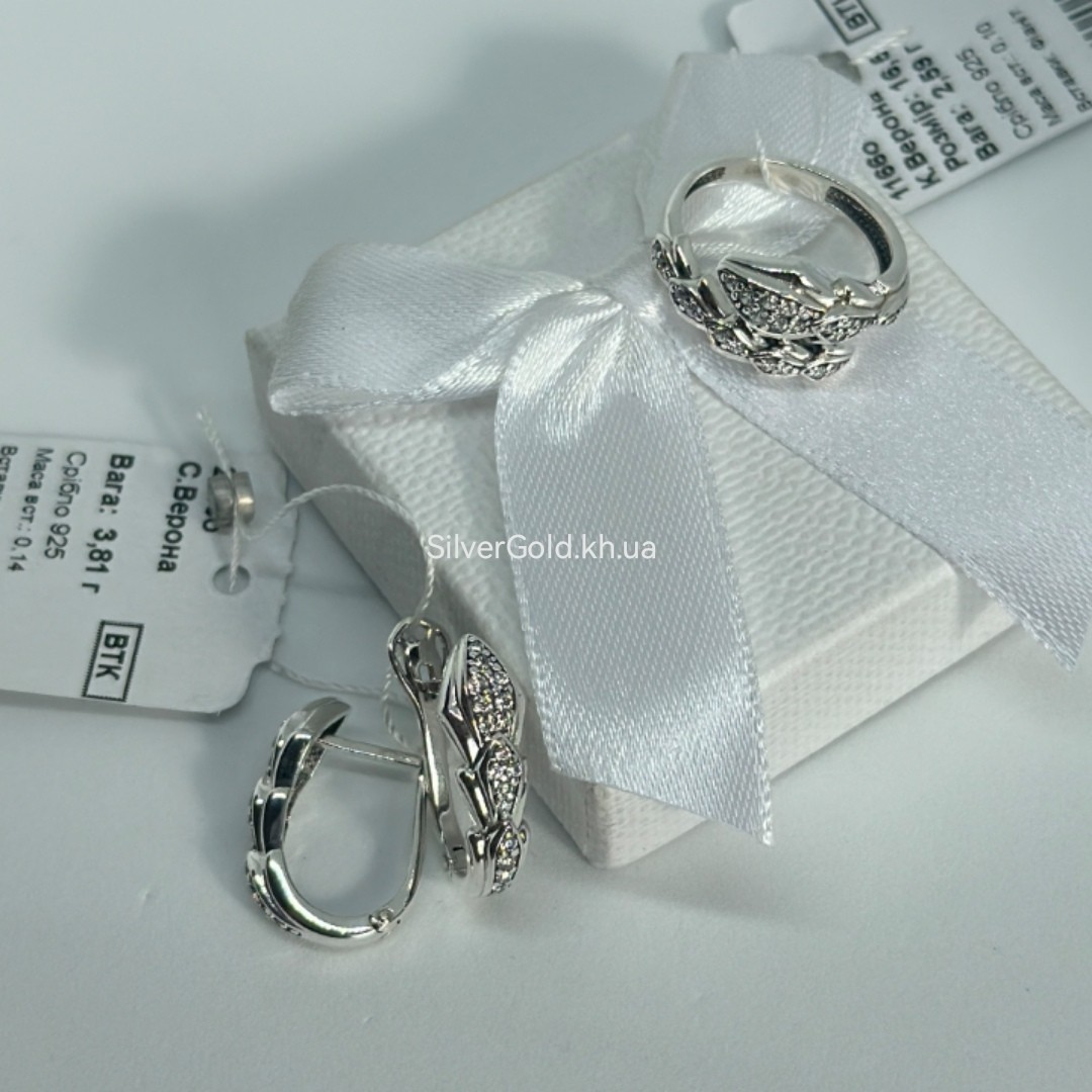 Ціна комплекту без родію - 3588грн(сережки-1954грн, каблучка 1634грн)